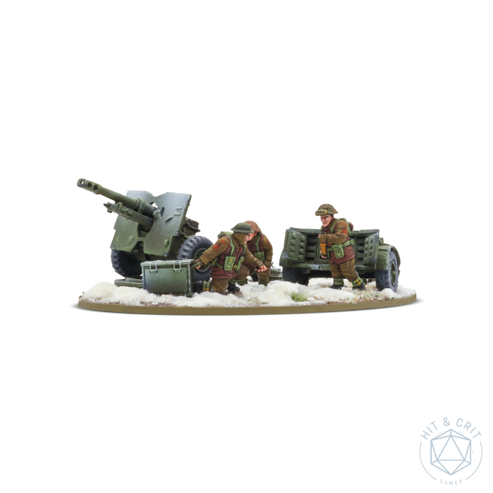 Contains one metal 25-pdr Light Howitzer with three Warlord Resin British/Canadian (Winter) crew, resin limber, and plastic bases.