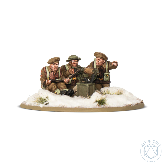 Contains one Warlord Resin medium machine guns with three British/Canadian (Winter) crew, and plastic bases.