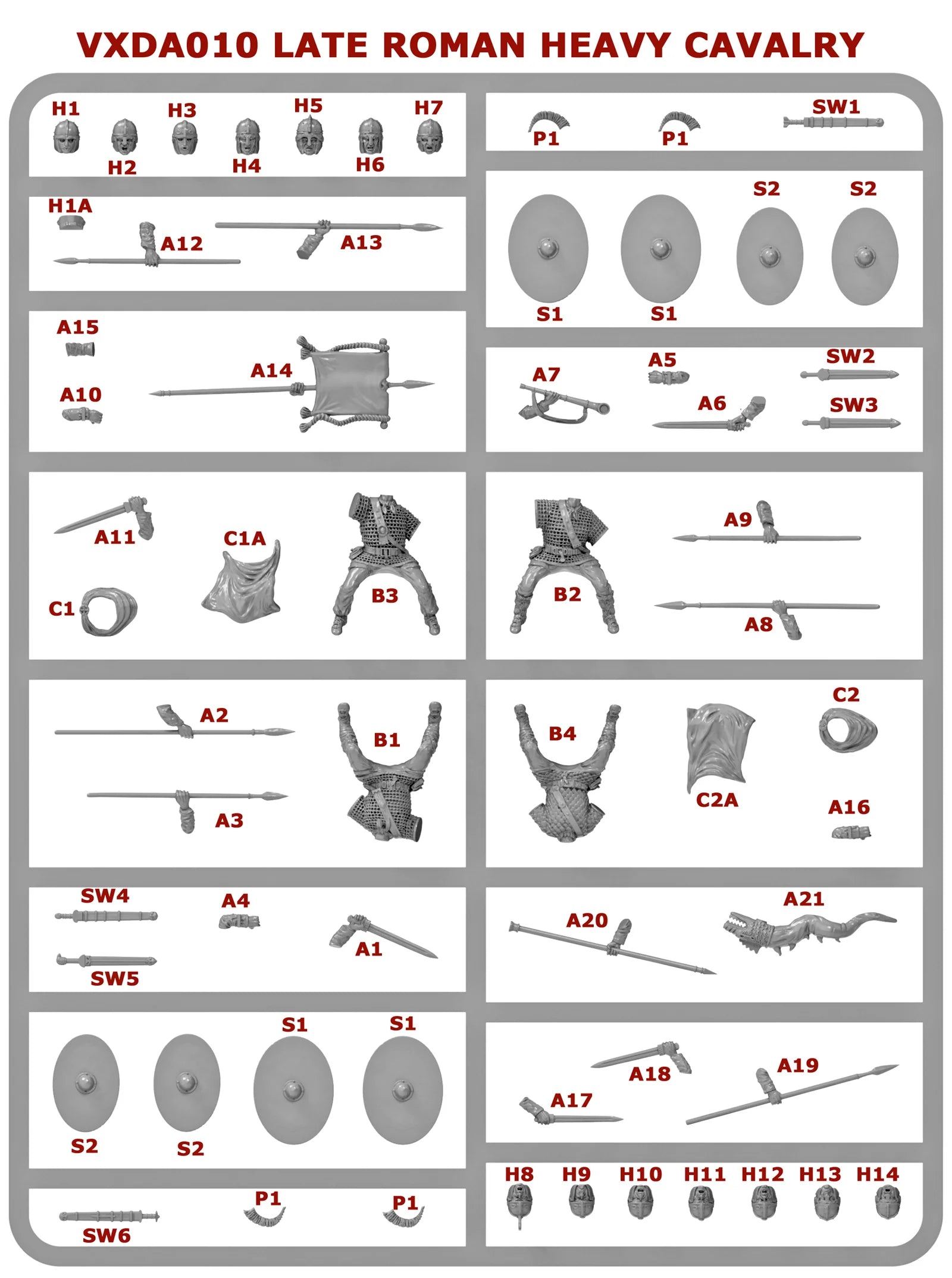 This fantastic set of miniatures represents Roman heavy cavalry in mail and scale armour of the 4th to 6th Centuries.