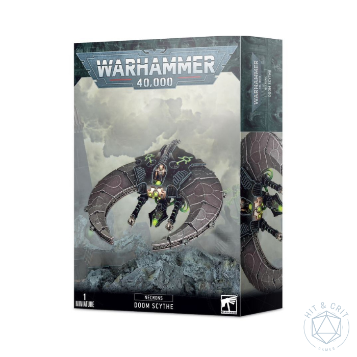 This multi-part plastic kit contains 51 components, a flying stem, large oval base, and a Necron transfer sheet with which to build a Night Scythe. This kit can be used optionally to build a Doom Scythe.