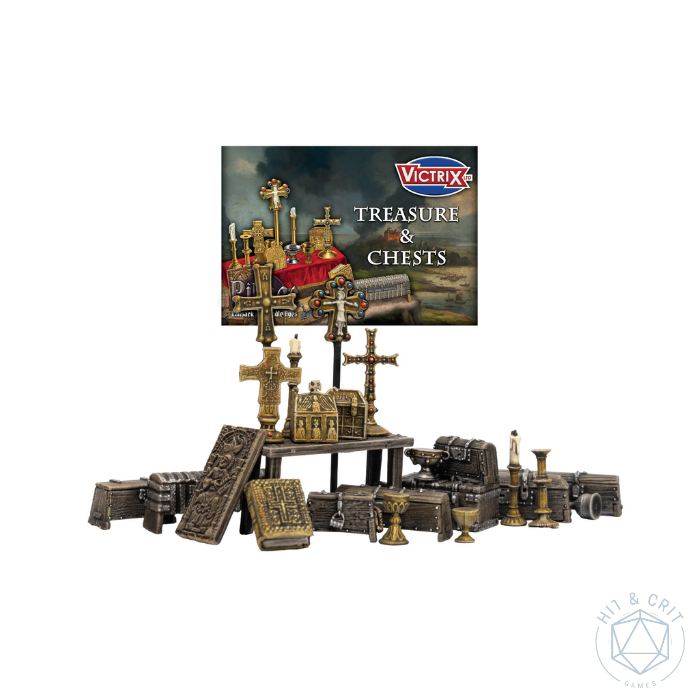 Enrich your Dark Age and Medieval games (including Pillage of course) with this beautiful collection of treasure pieces and lootable objects. This set includes an assortment of chests, caskets, religious items and decorative artefacts ideal for scenario objectives, tabletop dressing, or narrative play.
