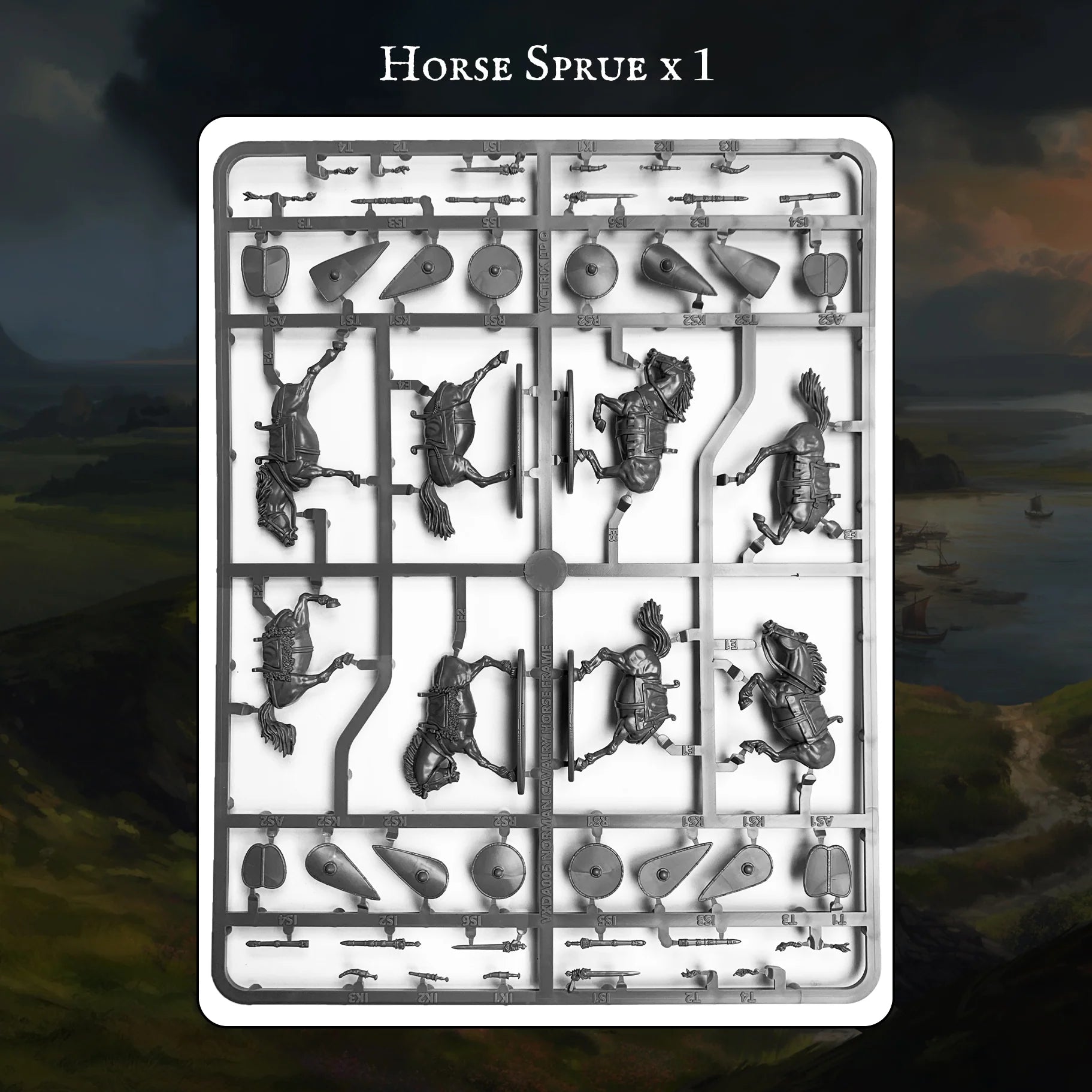 Protect your lands, animals and treasures from invaders with your Saxon warband. This set contains a versatile selection of formidable warriors, cavalry and archers. A perfect starter army for Pillage or other skirmish games.